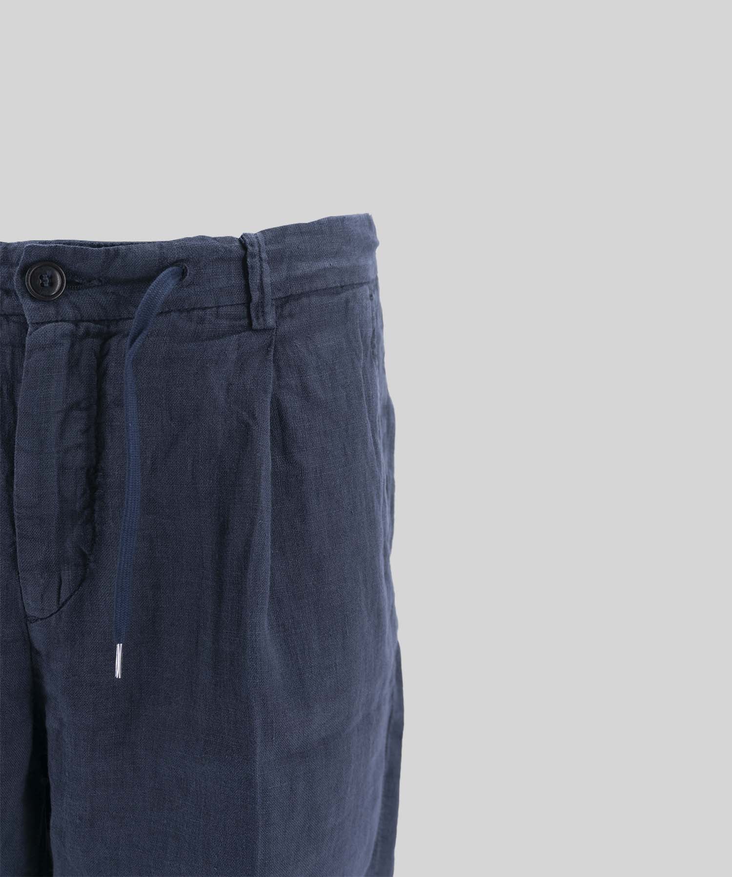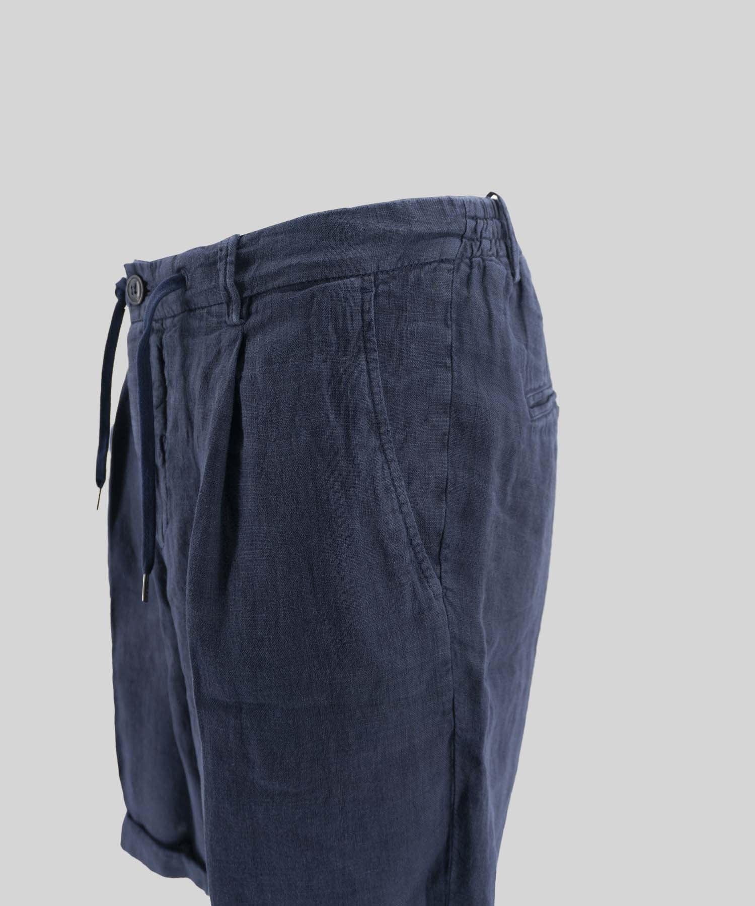 Bermuda 40 WEFT, above-the-knee model, with elastic waistband and zip closure drawstring, with side pockets and two welt pockets on the back, in lightweight linen fabric.