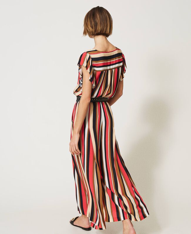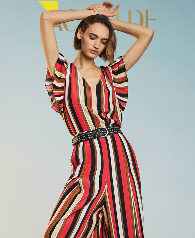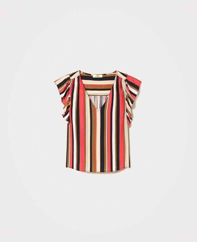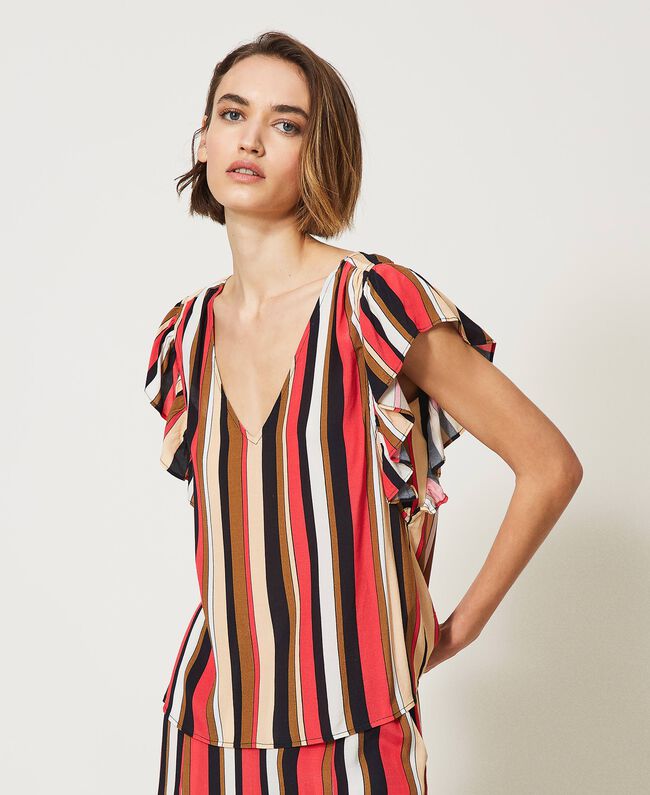 Blouse in multicolor printed crêpe de Chine, V-neck and ruffled sleeves. This item is part of the Actitude collection.