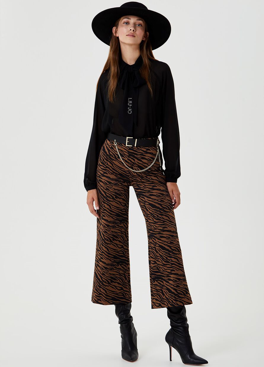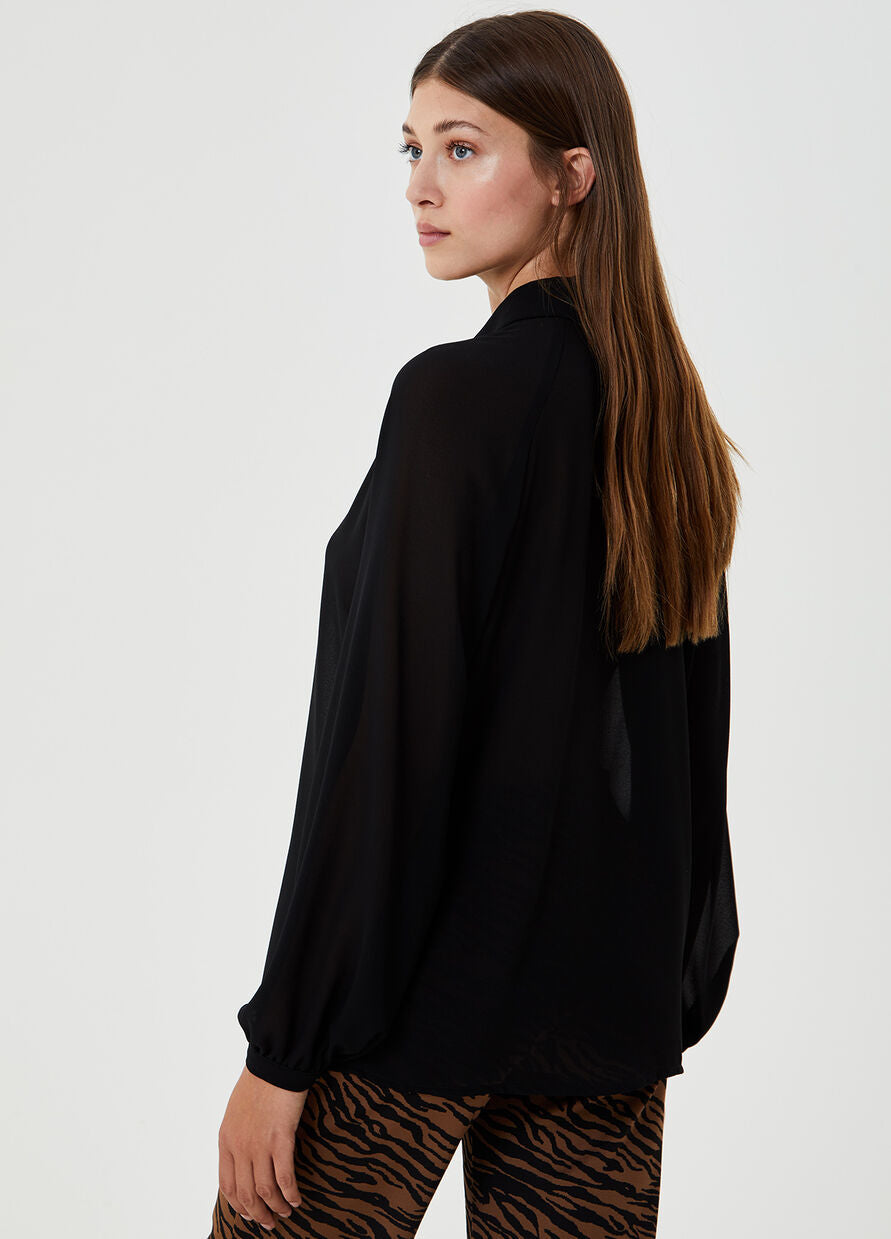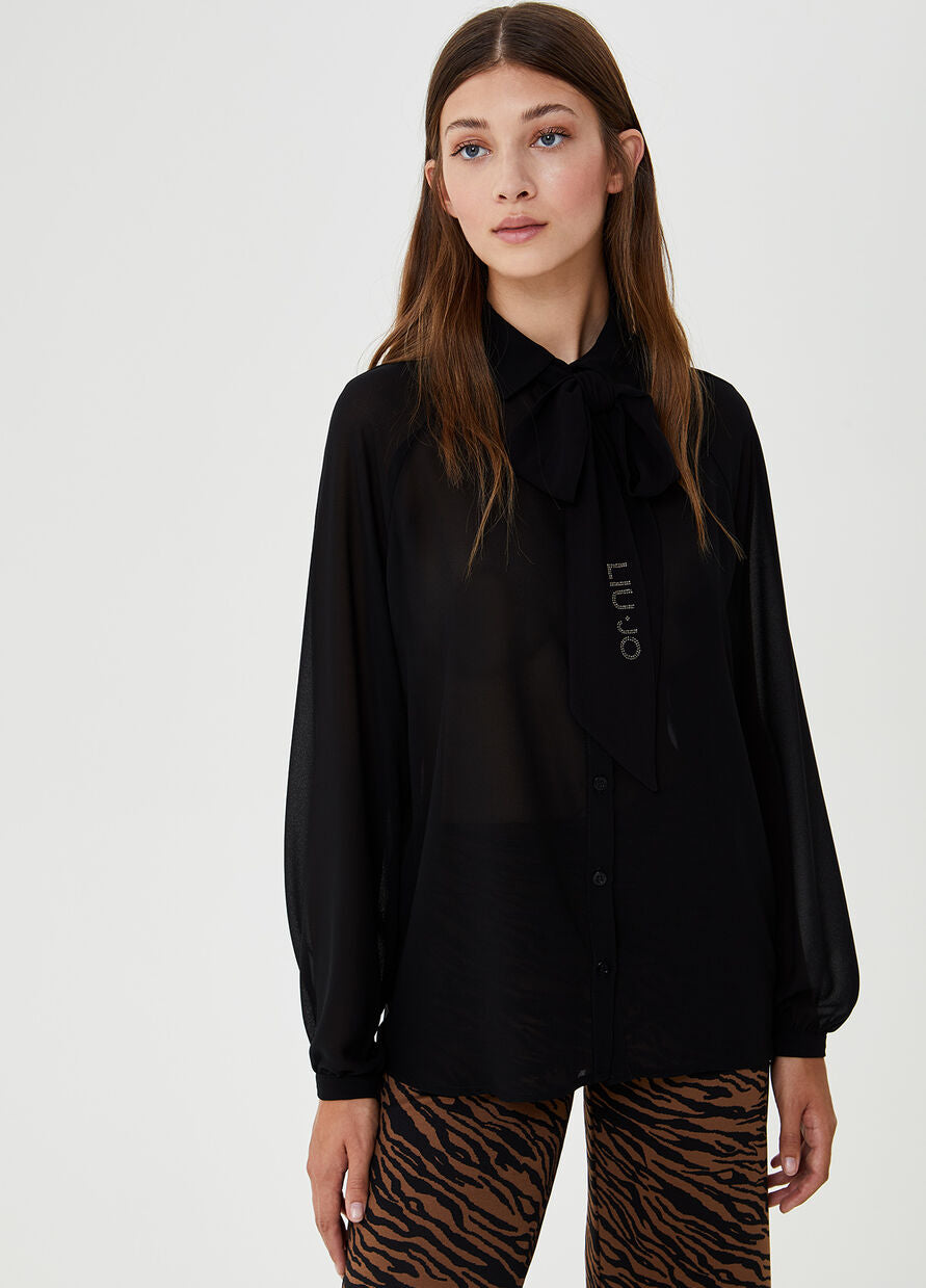 Long-sleeved shirt made of crêpe with a matching bow to tie at the neck.