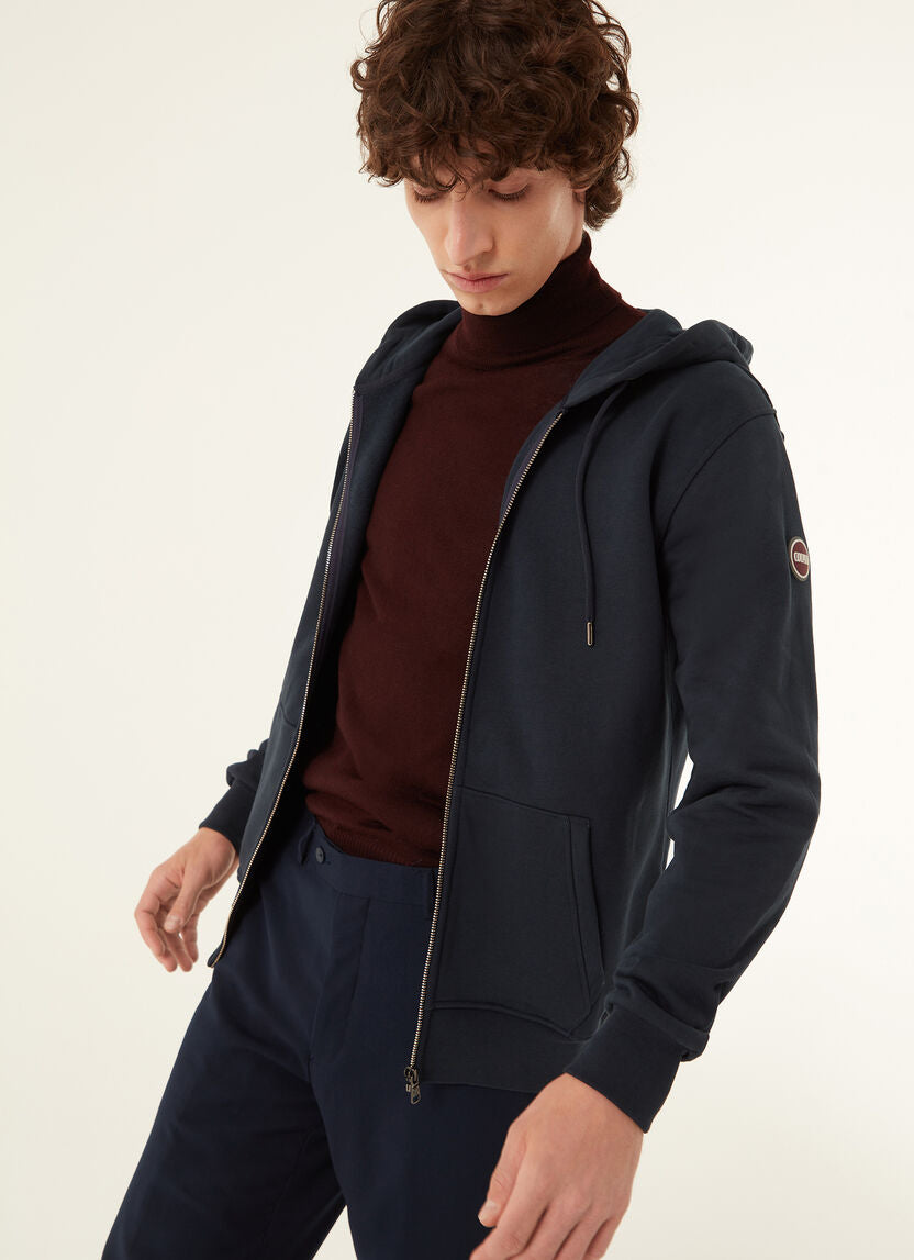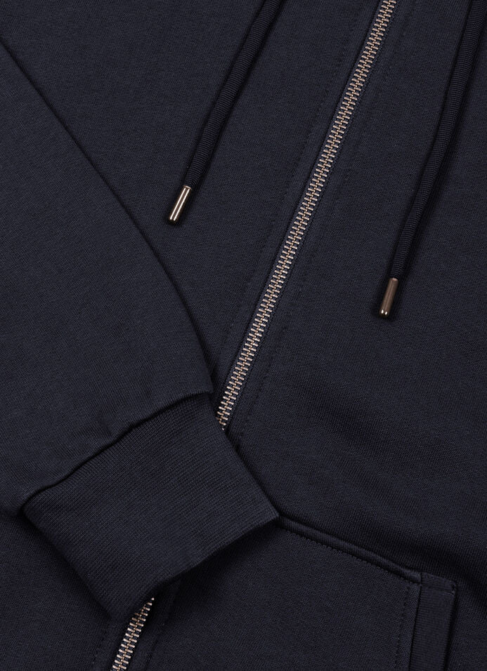 Men's hoodie made of brushed cotton. With a zip closure and warm hand-warmer pockets, it is the perfect mix of practicality and comfort for the winter season.