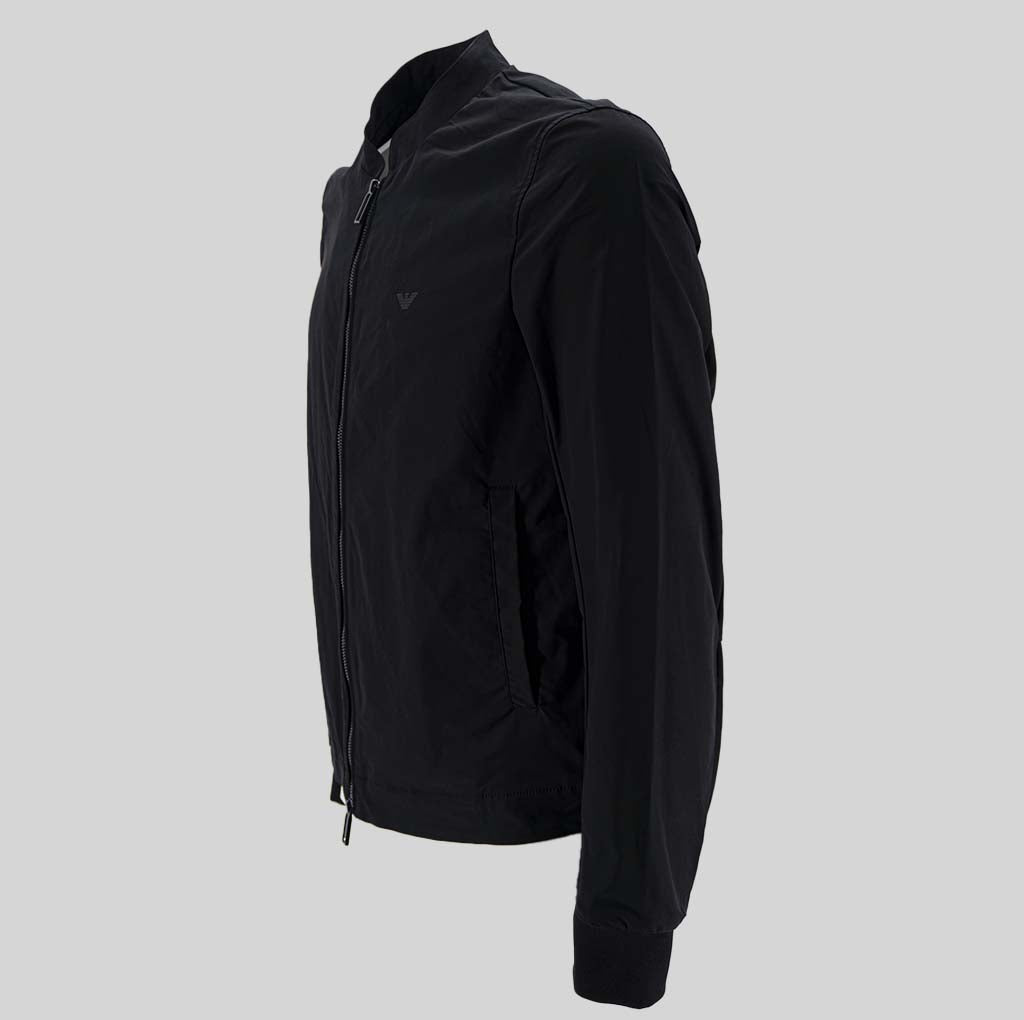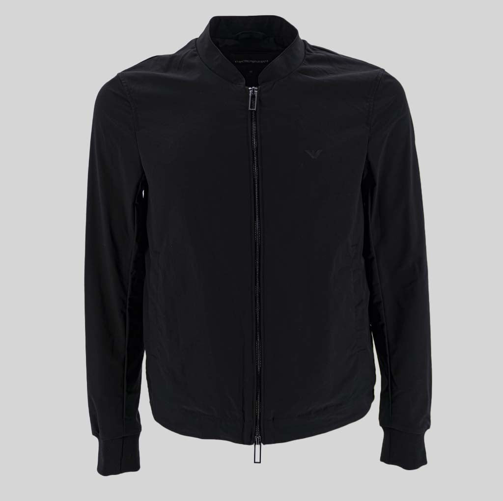 This Emporio Armani jacket features a front zip closure, long sleeves, ribbed cuffs, a logo on the chest, and 2 side pockets. Materials: 100% polyester.