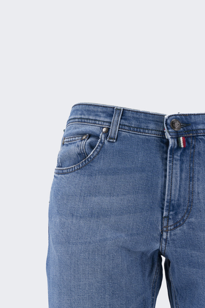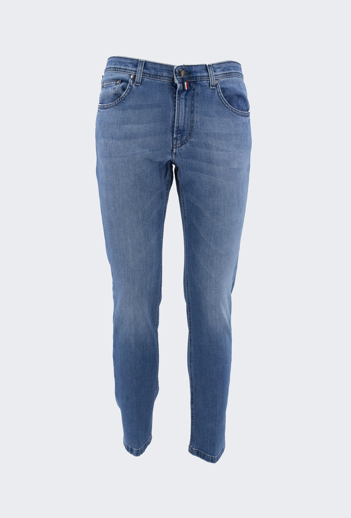 Denim jeans with 5 pockets made in a light wash. Slim fit
