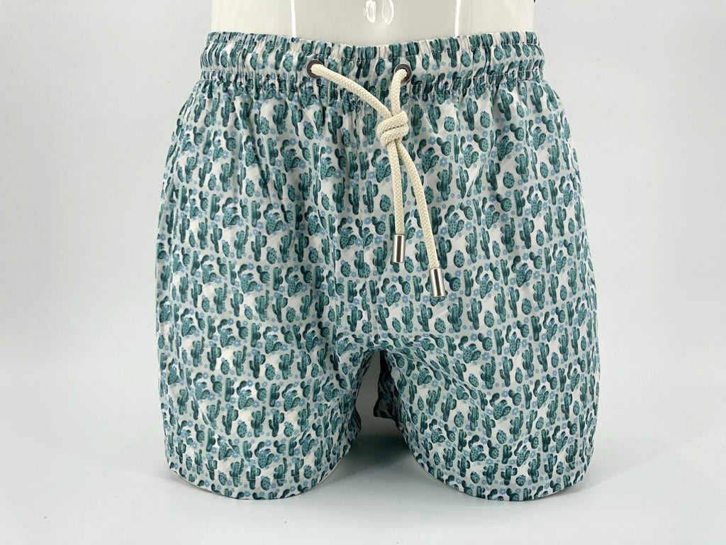 Pantaloncino da mare fantasia Cactus / Bianco - Ideal Moda