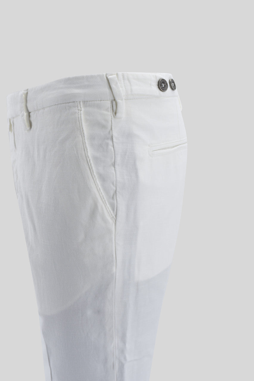 Pantalone Slim Fit in Lino e Cotone / Bianco - Ideal Moda