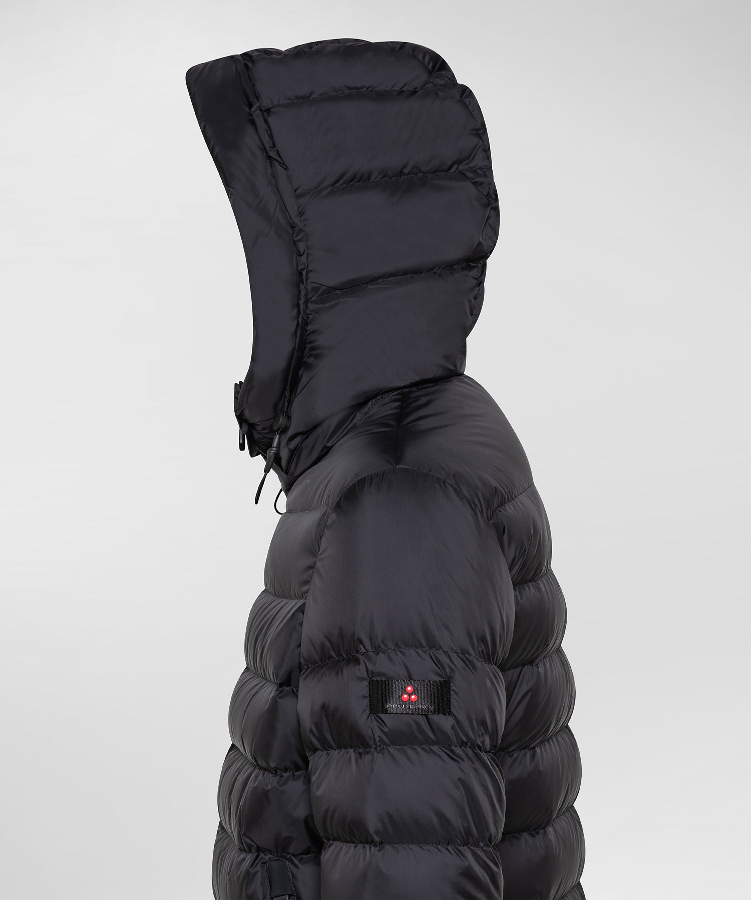 Super lightweight nylon down jacket, 20 deniers, with a semi-shiny surface. The fabric is made water-resistant with environmentally friendly substances. The elastic drawstrings around the removable hood and at the bottom, along with the cuffs with inserted elastics, allow the model to fit the body, enhancing thermal comfort. High collar with logo tape, zip closures for the pockets and, with double slider and molded, for the garment. All details are in neo color. Comfortable internal pocket for items. Fast and dynamic: a new classic of metropolitan sportswear signed Peuterey. The garment is PFC free.