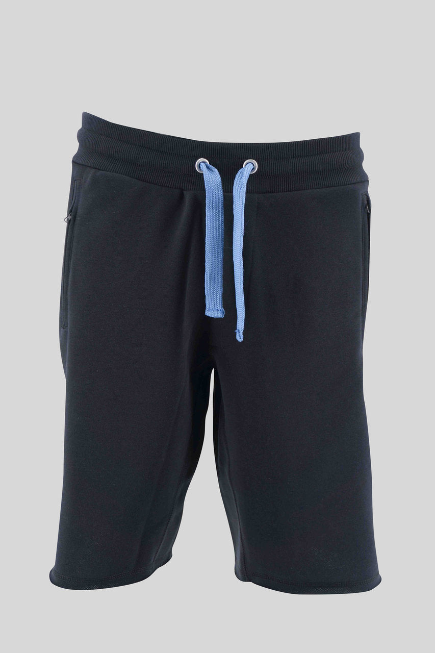 Elastic ribbing in tone at the waist and drawstring with contrasting color tape.