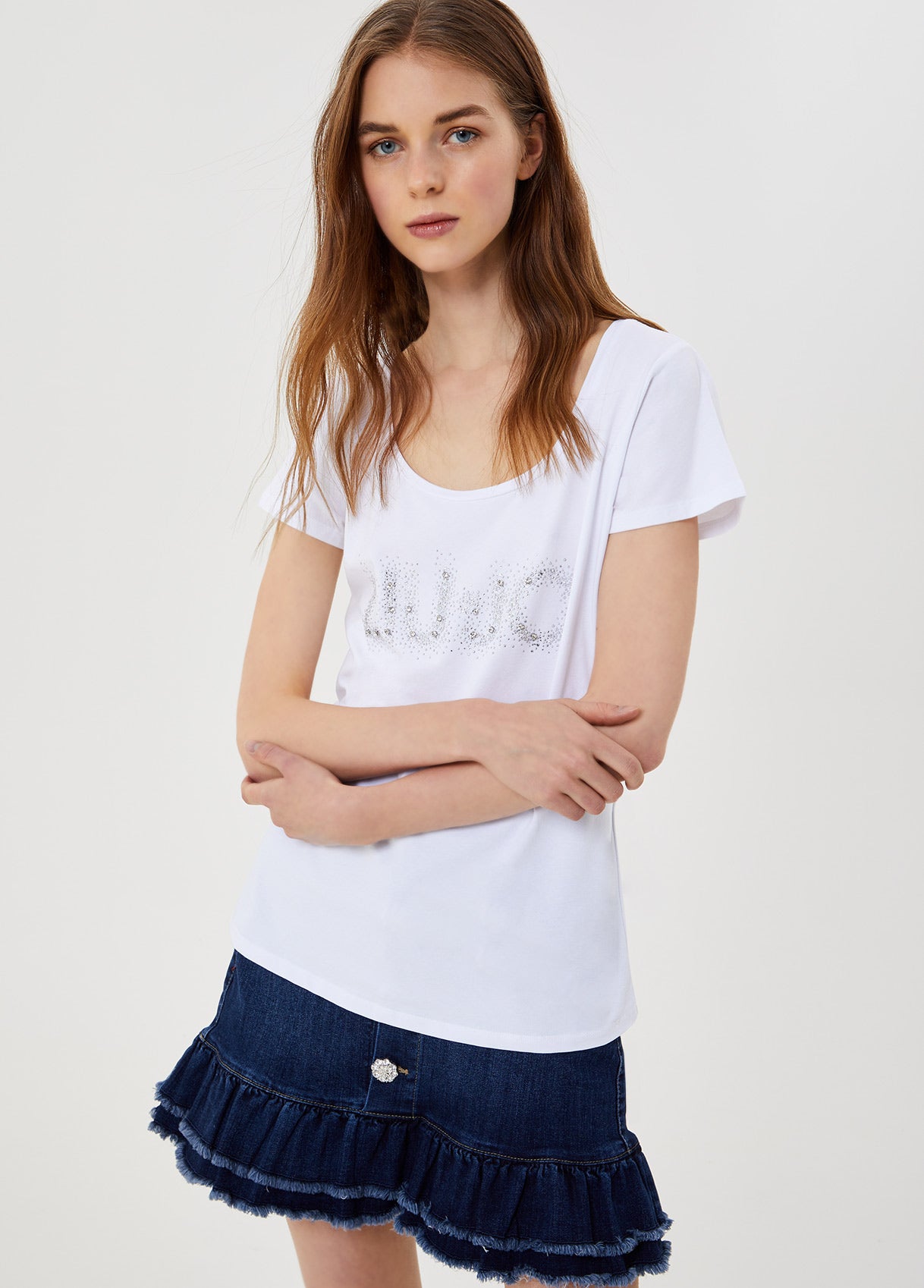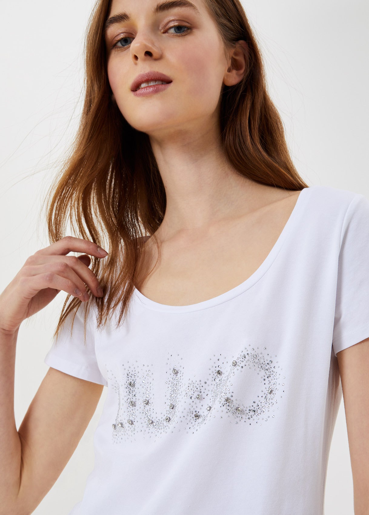 T-shirt con applicazioni gioiello / Bianco - Ideal Moda