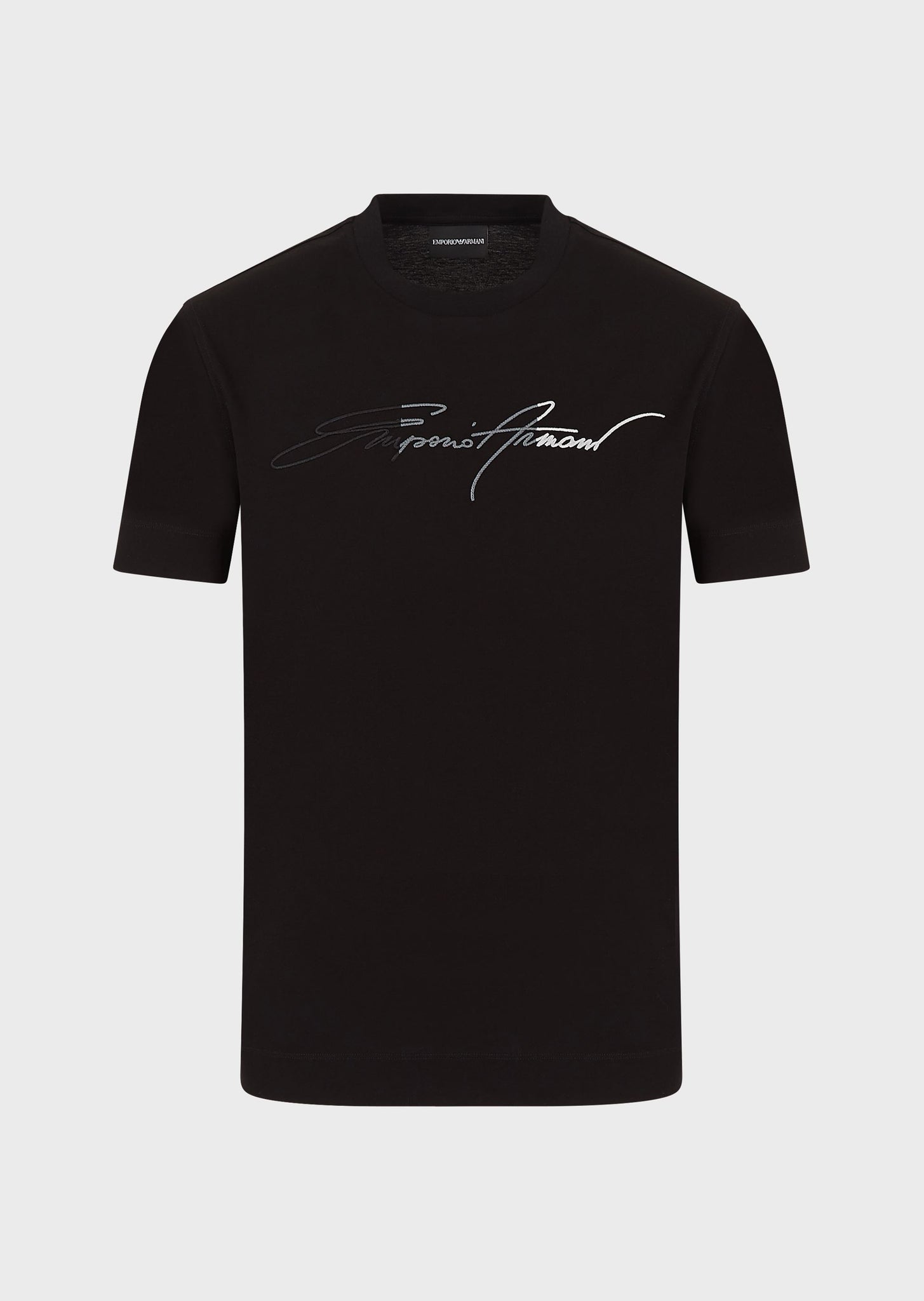 T-Shirt in mercerized jersey with signature logo embroidery / Black